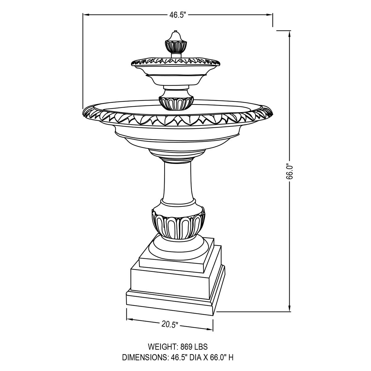| Base Dimension | 20.5" Sq |