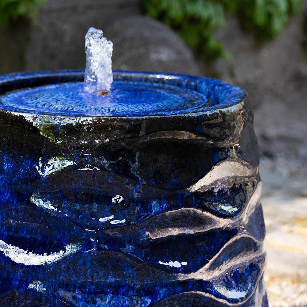 The petite Rumba Fountain features a textured wave patterning and is crafted by hand from terracotta, finished in a bold blue glaze. This modern water feature offers a gentle background soundscape and is also available as a taller fountain, as well as the Rumba Planter series. Installation guide can be found below in Downloads.