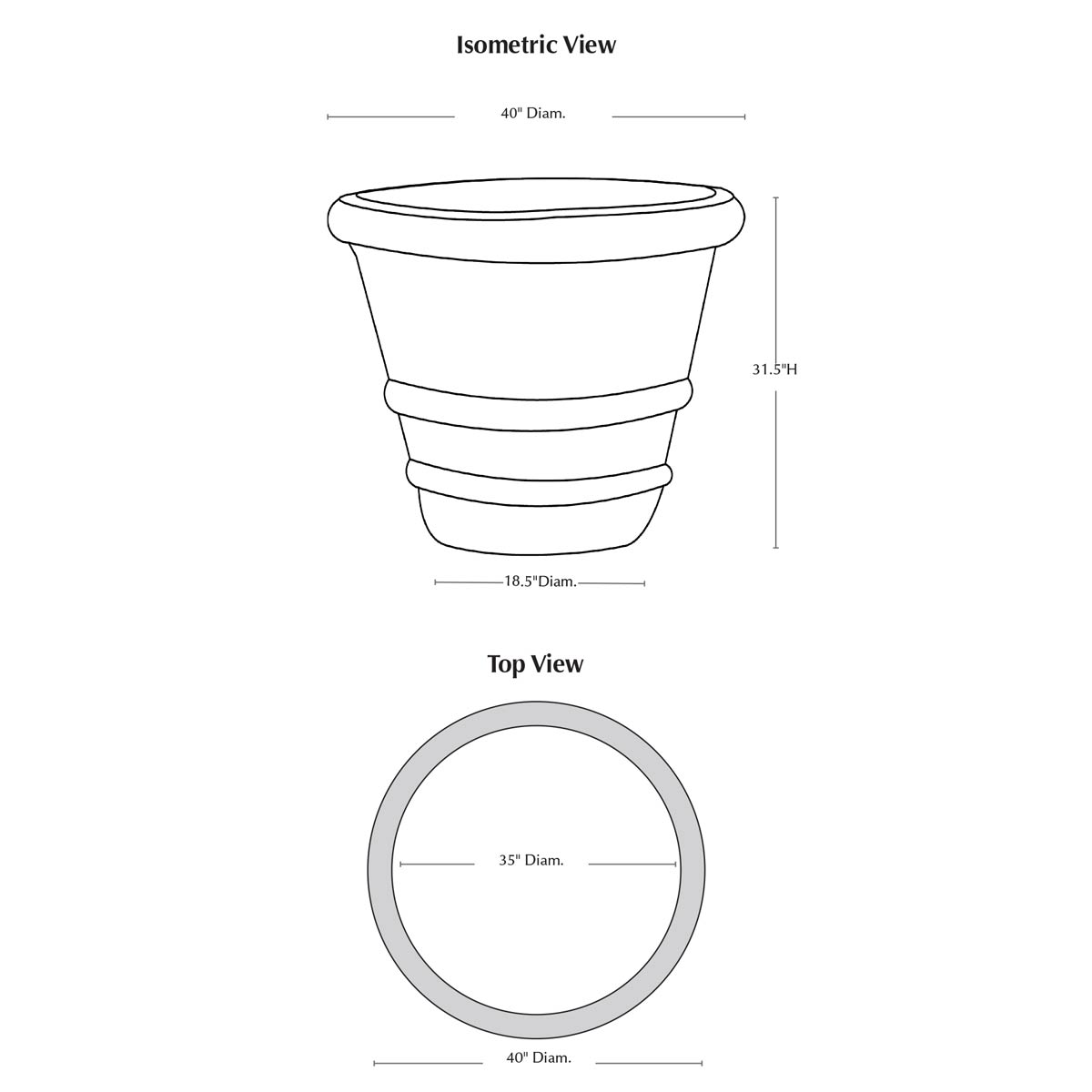 The Textured Rolled Rim Planter is crafted from durable cast stone in a variety of rustic finish options. Use this large 40 inch round container as a focal point in your outdoor area, or, flank two at an entry for a striking effect. If you are looking for smaller planters in the same design, please take a look at the Rustic Rolled Rim Planters.