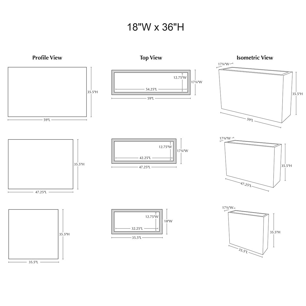 We offer the 36″H Sandal Planter Boxes in different length options. Made of lightweight yet durable fiberglass, they are available in seven modern finishes. Fill them with your favorite plants then mix and match sizes to create a stylish garden border, or, geometric visual effect.