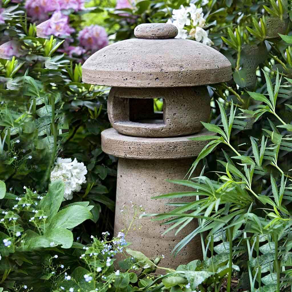 The well-proportioned Sapporo Pagoda embodies harmony and balance, inspired by traditional Asian design. Crafted from durable cast stone, this elegant garden accent looks especially enchanting at night when gently illuminated with a candle placed in its window opening.
