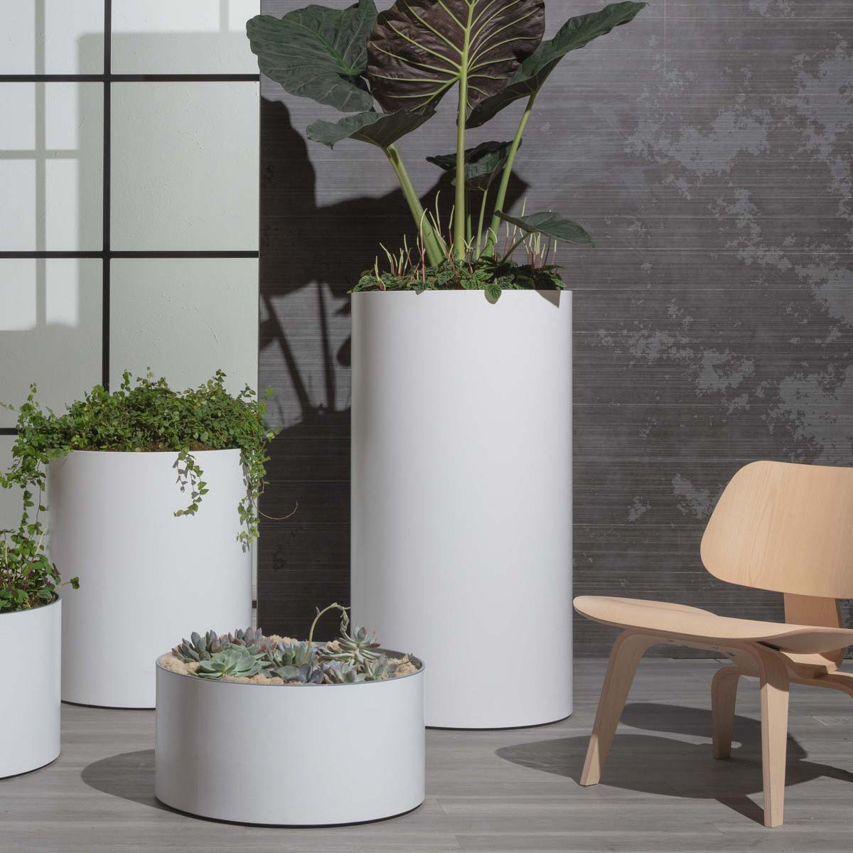 Thoughtfully designed, subtle discs at the base create a slight reveal, adding a touch of understated elegance to its overall aesthetic. Whether enhancing the look of a modern home, upscale office, or commercial landscape, the Silo Planter offers a perfect combination of practicality and timeless style.