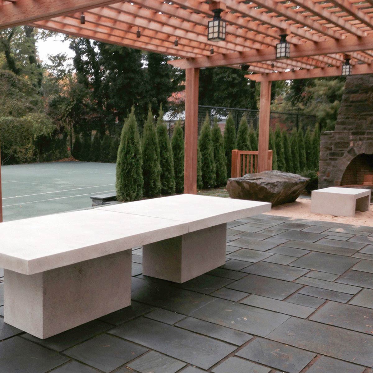 These Fiberglass resin and aggregate outdoor pieces are some of the lightest concrete-like furniture on the market.