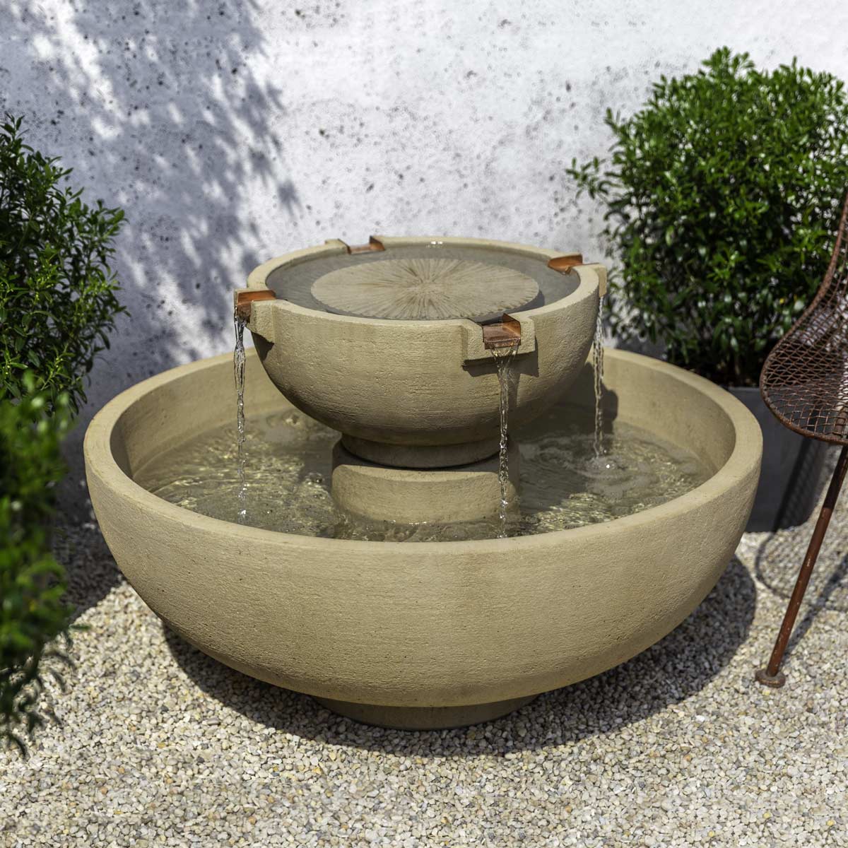 A smaller version of our 4′ Del Rey Fountain, the Small Del Rey Fountain is a two-tier circular bowl water feature and makes a wonderful garden centerpiece for a smaller area. Enjoy the soothing sounds of water spilling from four spouts, and admire the clean lines of this modern outdoor landscaping accent.