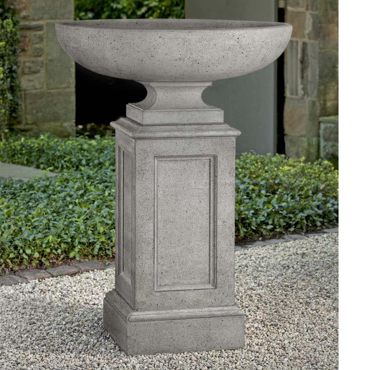 Shallow Cast Stone Urn with Optional Pedestal
