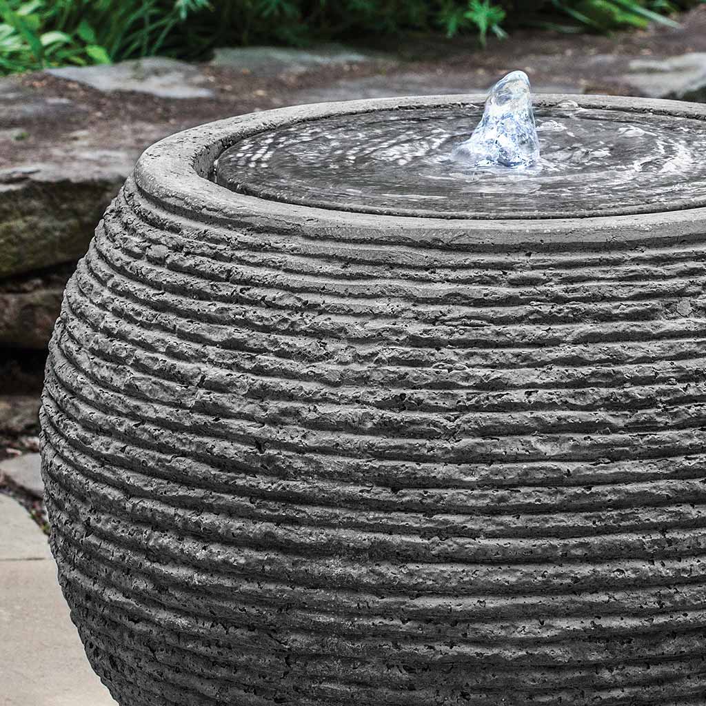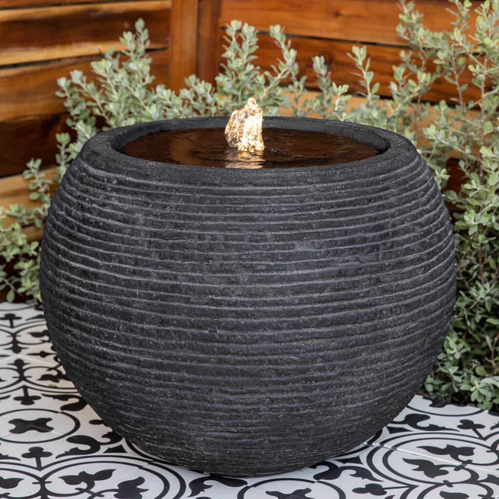 Our spherical Large Sonora Fountain showcases an eye-catching contemporary design with its stacked horizontal line texture. Crafted from durable fiber cement, this water feature offers visual interest from all angles and adds a subtle soundscape to outdoor spaces.