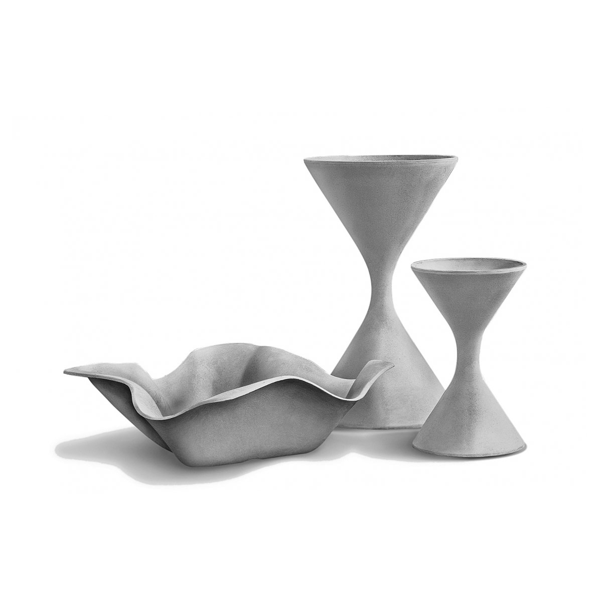 Products are made of natural, durable, recyclable, lightweight fiber cement. Manufactured in Switzerland. Each product is hand formed and signed by individual artisans. Modern design in a timeless and enduring material. These outdoor pieces possess an exceptional strength-to-weight ratio, making them suitable for a wide range of environments‚ from weight-restricted roof terraces to interiors, to public spaces. Even the largest sizes are easy to handle.
