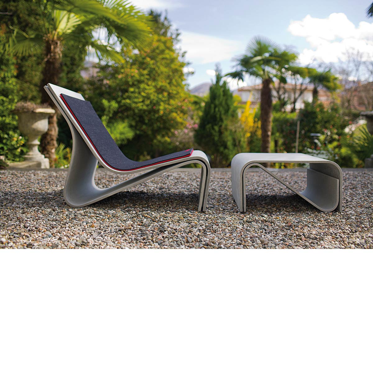 Products are made of natural, durable, recyclable, lightweight fiber cement. Manufactured in Switzerland. Each product is hand formed and signed by individual artisans. Modern design in a timeless and enduring material. These outdoor pieces possess an exceptional strength-to-weight ratio, making them suitable for a wide range of environments‚ from weight-restricted roof terraces to interiors, to public spaces. Even the largest sizes are easy to handle.