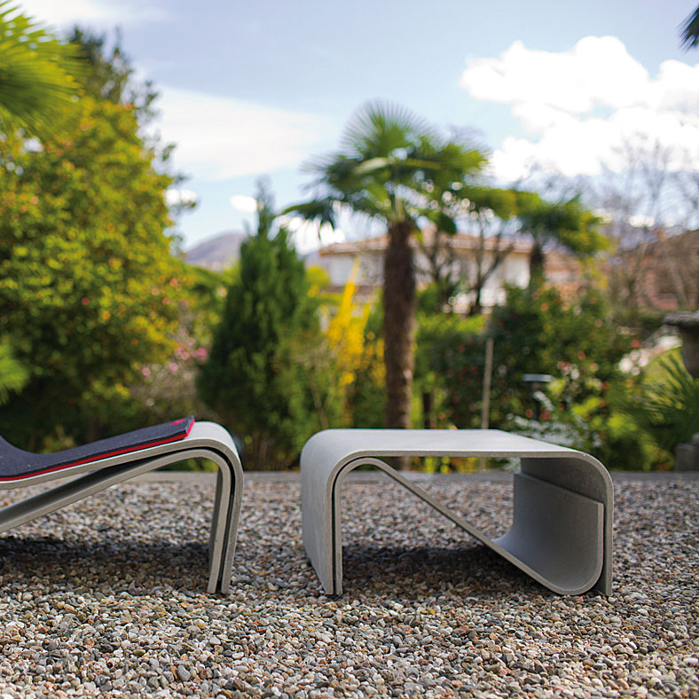 Our modern Sponeck Table is a practical companion piece to the Sponeck Chair, and serves a dual role as side table or footrest. Its clean angles and lines are crafted from durable but lightweight fiber cement in a light gray finish.