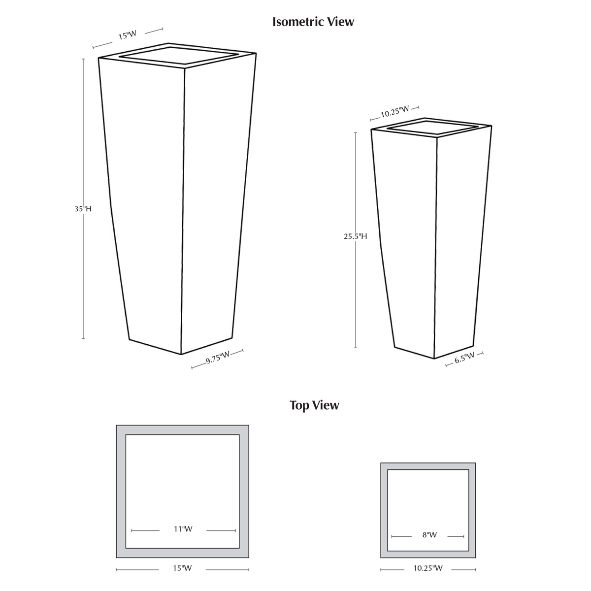 | Size | Set of 2 15"W x 15"L x 35"H | 107 lbs 10.25"W x 10.25"L x 23.5"H | 39 lbs |