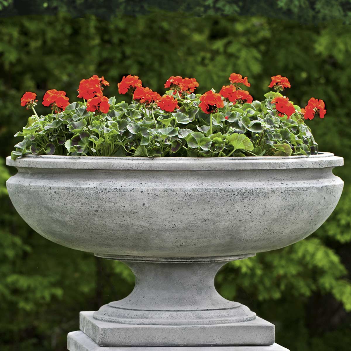 Add an element of grandeur to your garden with the St. Louis Planter. If you need added height, get the St. Louis Planter with a pedestal. Crafted from cast stone, in many finish options, this low and wide urn is an excellent choice for colorful plantings with shorter stems.