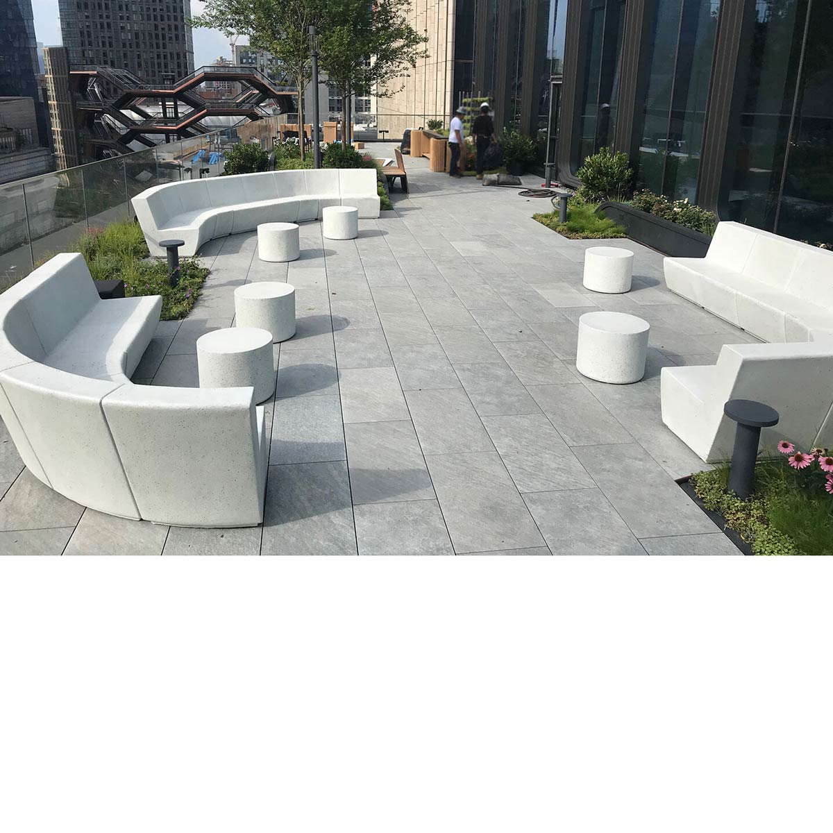 These Fiberglass resin and aggregate outdoor pieces are some of the lightest concrete-like furniture on the market.