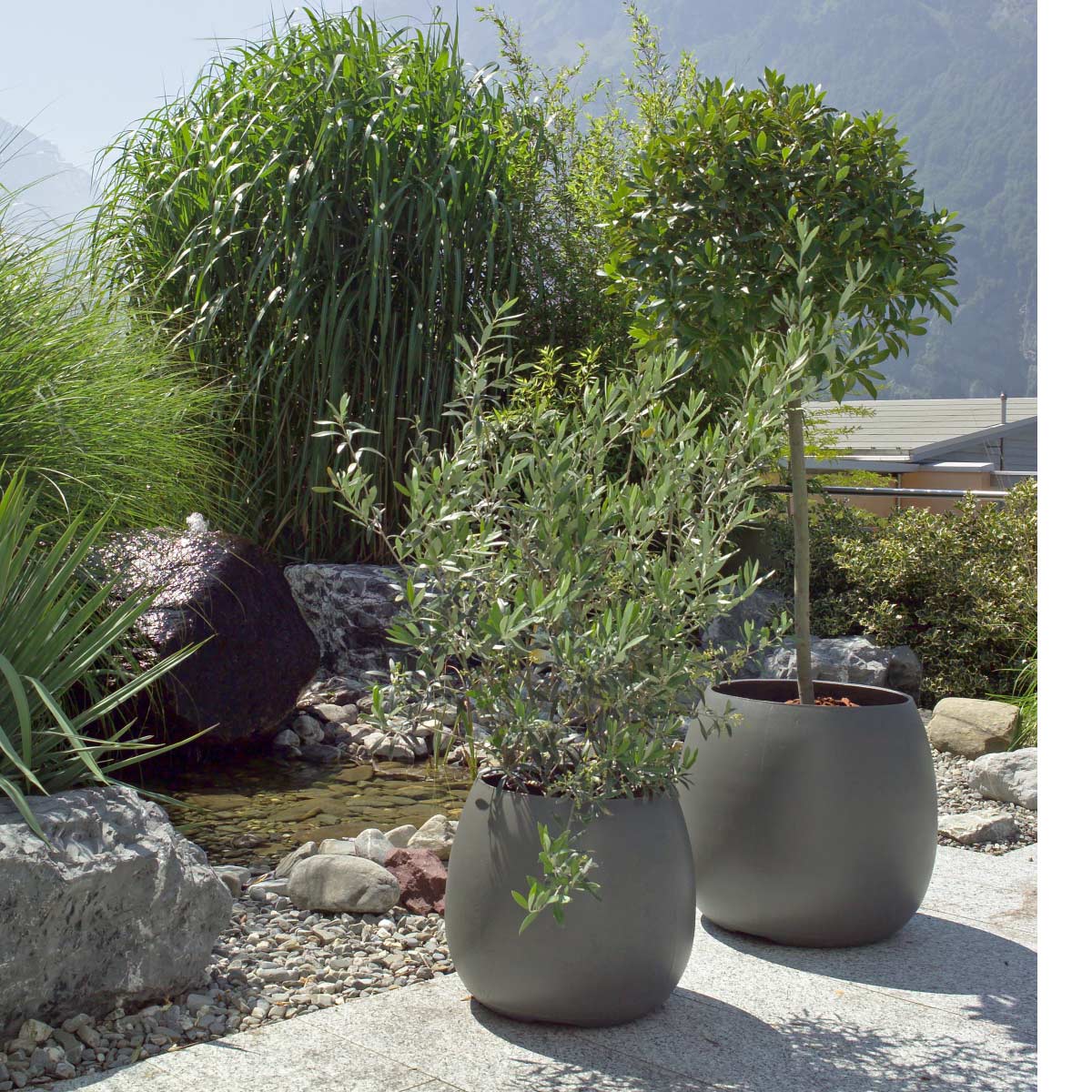 Products are made of natural, durable, recyclable, lightweight fiber cement. Manufactured in Switzerland. Each product is hand formed and signed by individual artisans. Modern design in a timeless and enduring material. These outdoor pieces possess an exceptional strength-to-weight ratio, making them suitable for a wide range of environments‚ from weight-restricted roof terraces to interiors, to public spaces. Even the largest sizes are easy to handle.
