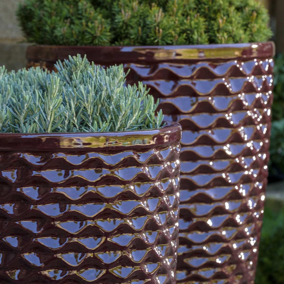 The artisanal process and traditional kilns used to manufacture our handmade and hand-glazed containers create planters of unique beauty and character. This traditional craftsmanship offers a rich variety of textures, colors and finishes which will enhance any contemporary or traditional design project. Additionally, most of our outdoor glazed pottery can be used in the design of custom water features. For quality control, these natural clay planters are rigorously tested in freeze-thaw conditions. Our Glazed and Terra Cotta pottery is appropriate for use indoors and outdoors with proper planting and care in regions where freeze-thaw cycles exist.