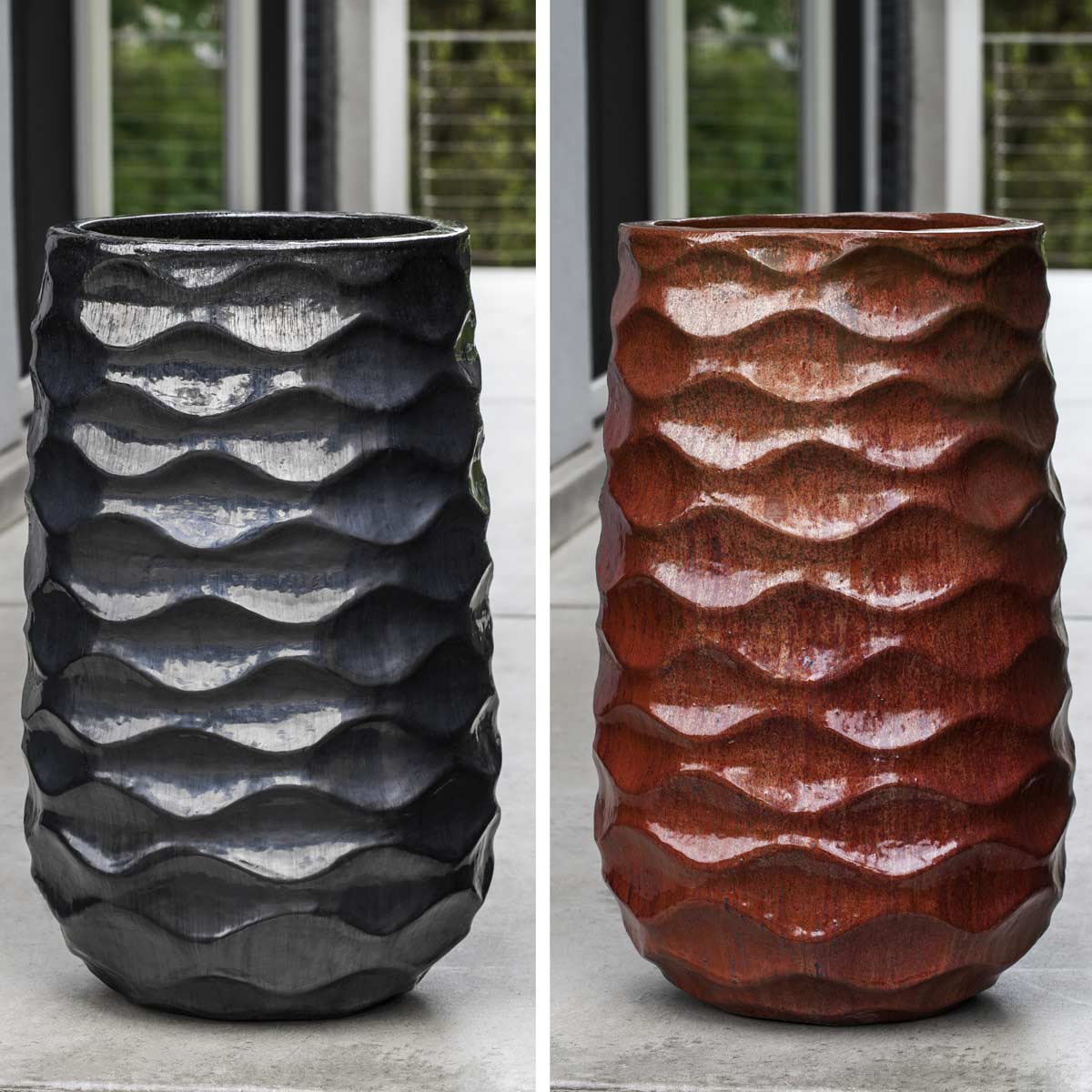The artisanal process and traditional kilns used to manufacture our handmade and hand-glazed containers create planters of unique beauty and character. This traditional craftsmanship offers a rich variety of textures, colors and finishes which will enhance any contemporary or traditional design project. Additionally, most of our outdoor glazed pottery can be used in the design of custom water features. For quality control, these natural clay planters are rigorously tested in freeze-thaw conditions. Our Glazed and Terra Cotta pottery is appropriate for use indoors and outdoors with proper planting and care in regions where freeze-thaw cycles exist.