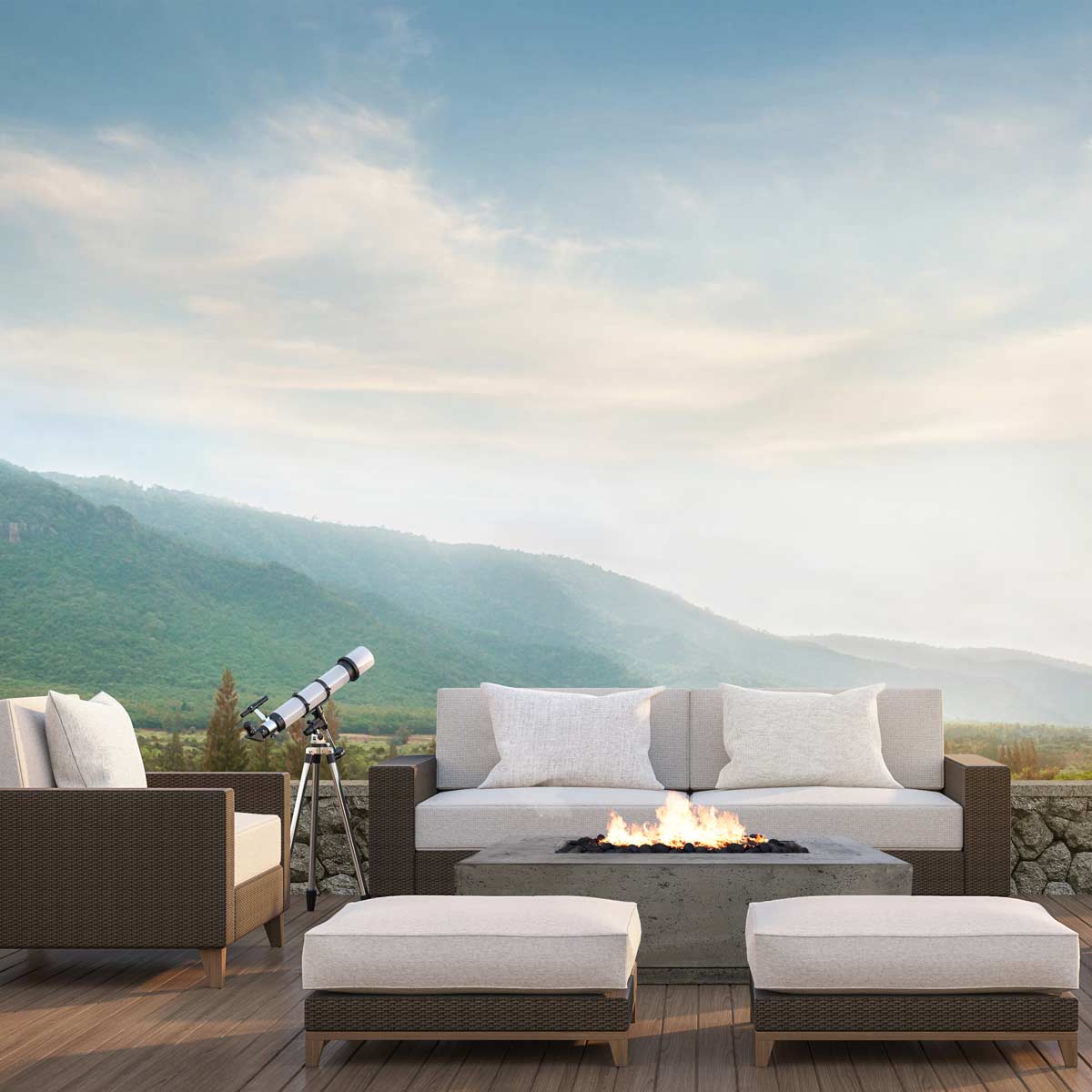Modern outdoor fire feature table