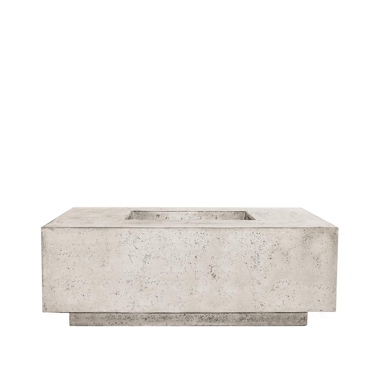 The large, square Tavola III Fire Table provides warmth and ambiance for your modern outdoor retreat. It has a 12″ edge that doubles as a convenient table surface for drinks and a comfortable 16″ height for seating, all at an adequate distance from the flame. These GFRC fire features are hand-crafted using a custom patina finishing process that guarantees each piece is a one-of-a-kind creation with subtle variation.