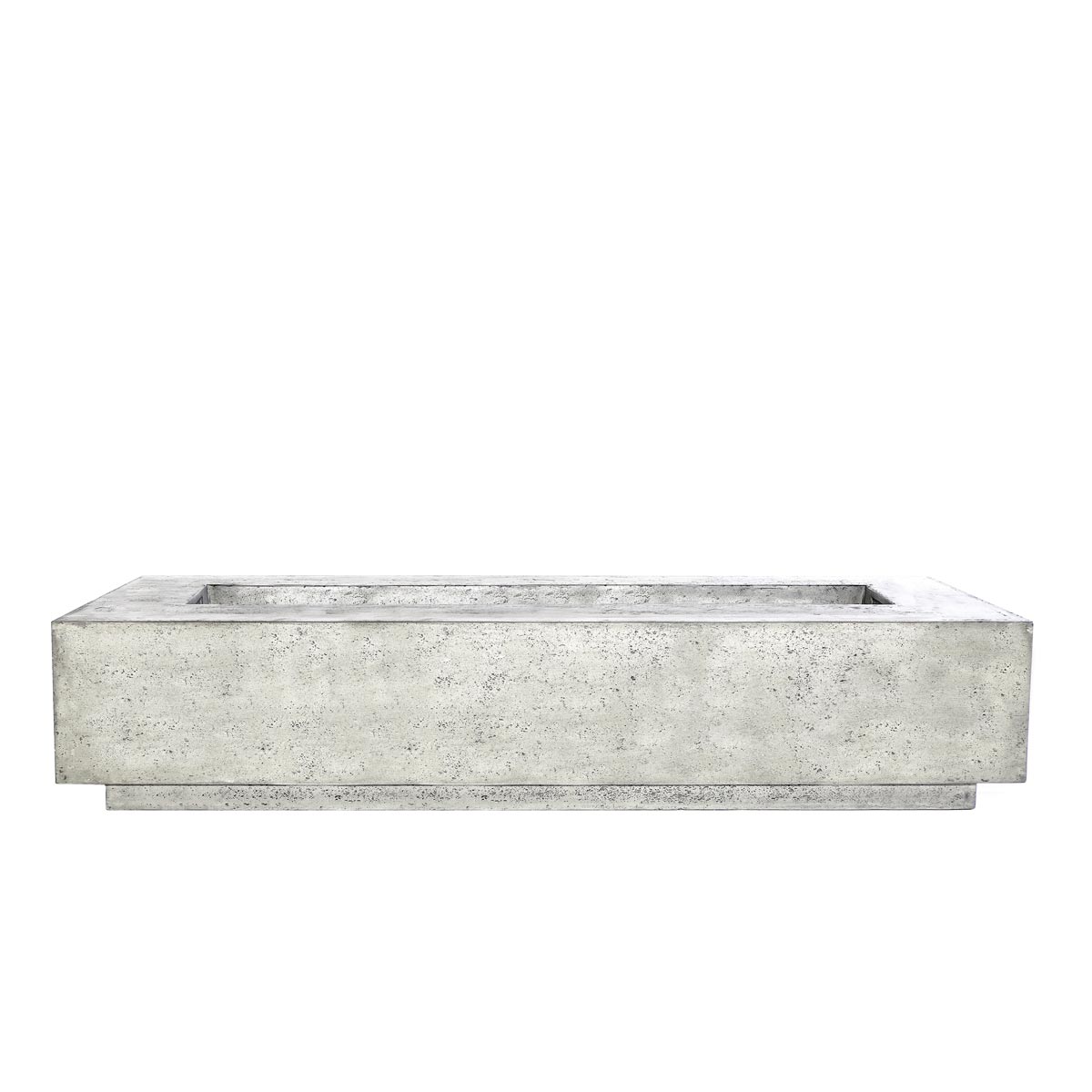 This extra large, rectangular Tavola VI Fire Table offers warmth and ambiance as a decorative accent for modern outdoor living spaces. It has an 11″ edge that doubles as a convenient table surface for drinks and a comfortable 16″ height for seating, all at an adequate distance from the flame. These GFRC fire features are hand-crafted using a custom patina finishing process that guarantees each piece is a one-of-a-kind creation with subtle variation.