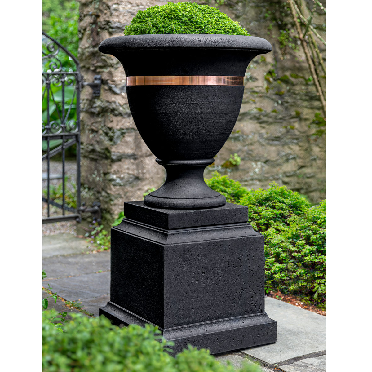 Cast stone products are available in fifteen exclusive natural pigment stains in addition to natural cast stone. The patinas are applied by hand in a multi-step process, resulting in unique and beautiful pieces that replicate the look of naturally aged materials.