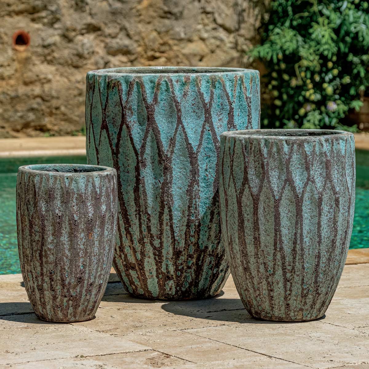 The artisanal process and traditional kilns used to manufacture our handmade and hand-glazed containers create planters of unique beauty and character. This traditional craftsmanship offers a rich variety of textures, colors and finishes which will enhance any contemporary or traditional design project. Additionally, most of our outdoor glazed pottery can be used in the design of custom water features. For quality control, these natural clay planters are rigorously tested in freeze-thaw conditions. Our Glazed and Terra Cotta pottery is appropriate for use indoors and outdoors with proper planting and care in regions where freeze-thaw cycles exist.