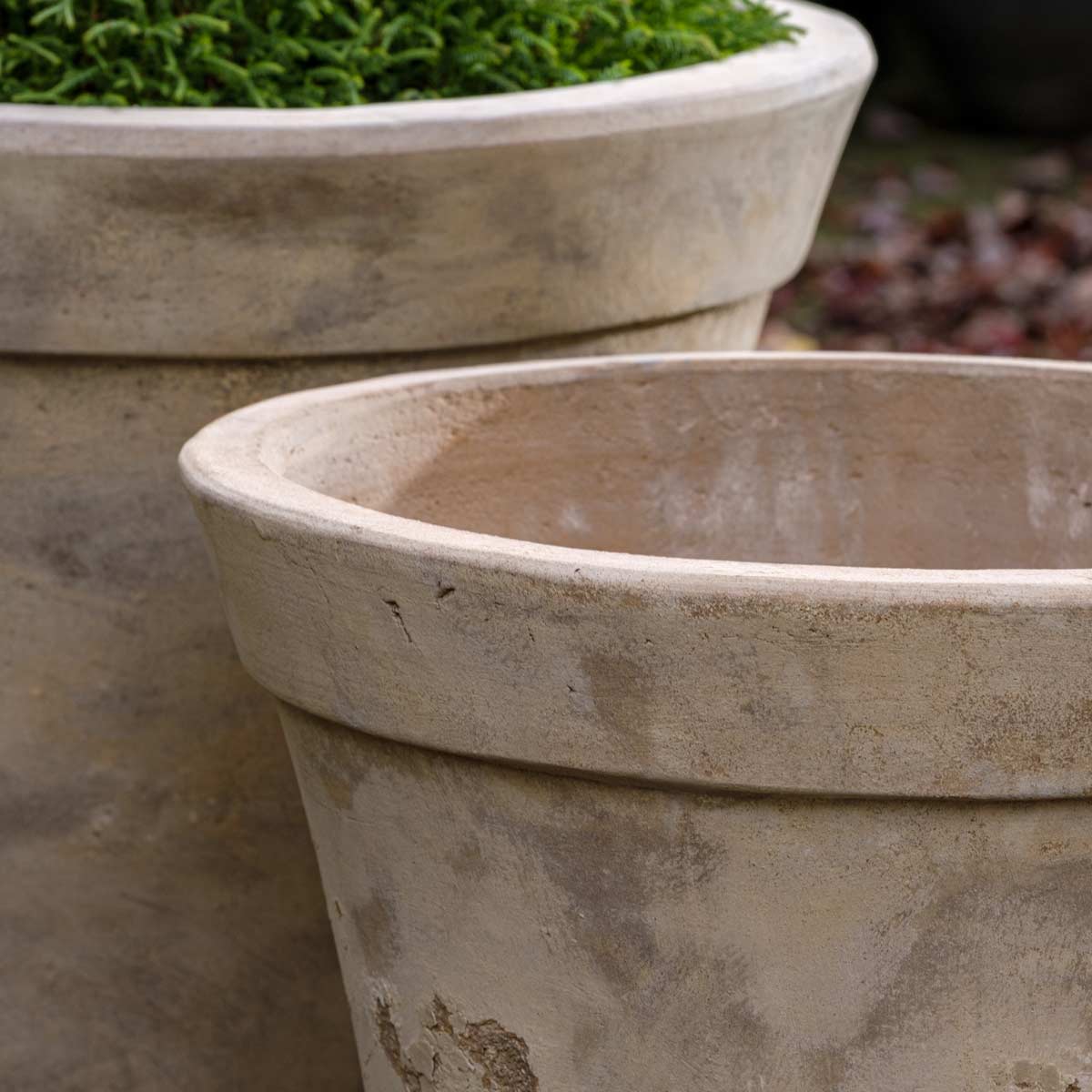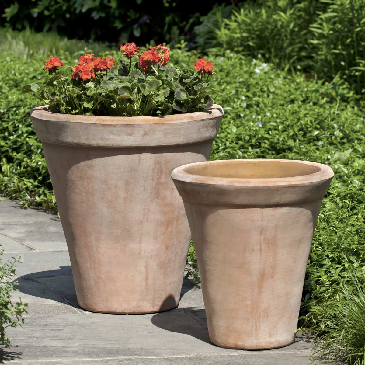 The artisanal process and traditional kilns used to manufacture our handmade and hand-glazed containers create planters of unique beauty and character. This traditional craftsmanship offers a rich variety of textures, colors and finishes which will enhance any contemporary or traditional design project. Additionally, most of our outdoor glazed pottery can be used in the design of custom water features. For quality control, these natural clay planters are rigorously tested in freeze-thaw conditions. Our Glazed and Terra Cotta pottery is appropriate for use indoors and outdoors with proper planting and care in regions where freeze-thaw cycles exist.