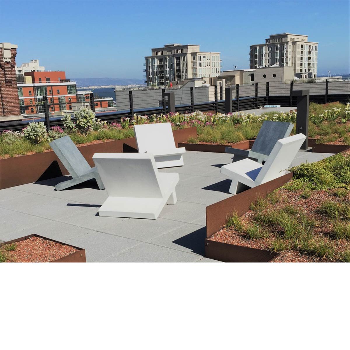 These Fiberglass resin and aggregate outdoor pieces are some of the lightest concrete-like furniture on the market.