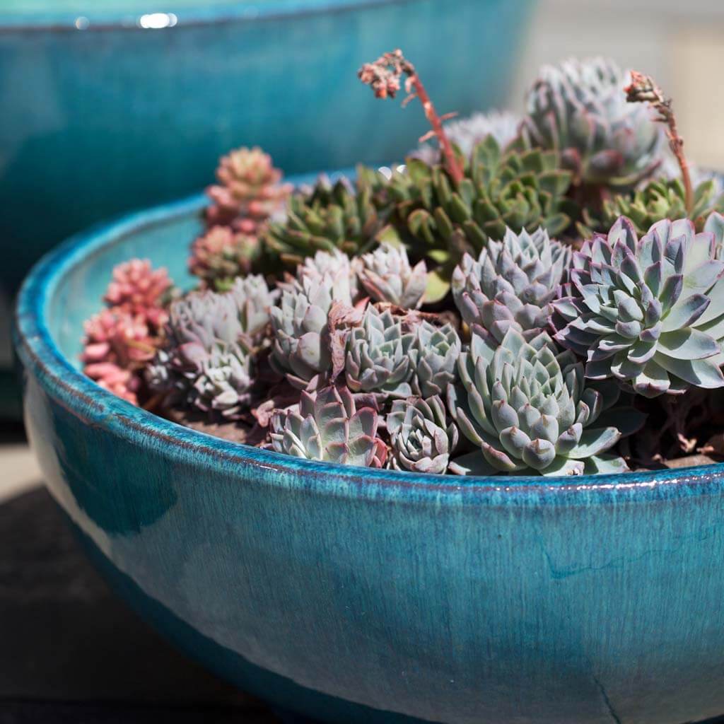 The artisanal process and traditional kilns used to manufacture our handmade and hand-glazed containers create planters of unique beauty and character. This traditional craftsmanship offers a rich variety of textures, colors and finishes which will enhance any contemporary or traditional design project. Additionally, most of our outdoor glazed pottery can be used in the design of custom water features. For quality control, these natural clay planters are rigorously tested in freeze-thaw conditions. Our Glazed and Terra Cotta pottery is appropriate for use indoors and outdoors with proper planting and care in regions where freeze-thaw cycles exist.
